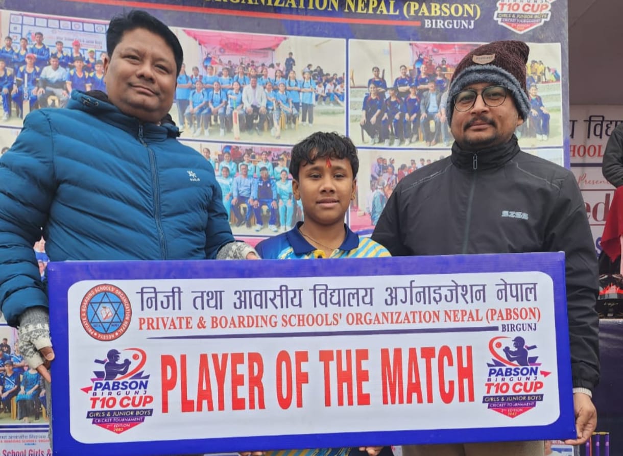 निजी तथा आवासीय विद्यालय संगठन (प्याब्सन) वीरगञ्जको आयोजनामा जारी दोस्रो संस्करणको प्याब्सन टी–१० गर्ल्स एण्ड जुनियर बोयज क्रिकेट प्रतियोगिता अन्तर्गत आदर्शनगरस्थित रंगशालामा विभिन्न विद्यालयबीचका रोमाञ्चक खेलहरू सम्पन्न भएका छन्। प्रतियोगितामा छात्र तथा छात्रा दुवै समूहका टोलीहरूले उत्साहजनक र प्रतिस्पर्धात्मक प्रदर्शन प्रस्तुत गरेका छन्।
