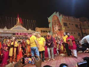 ​सांस्कृतिक आकर्षण र यजमानहरू महाआरतीमा १० दिपशिखाका साथ यजमानहरू गुड्डु रोनियार, चन्द्रगुप्त कुमार साह, राकेश रोनियार, संजय कुमार, अनुप अग्रवाल, प्रकाश कुमार गुप्ता (मुन्ना जी), राजकुमार साह, शशी सोनल, ललित अग्रवाल र विक्रम साह ले धर्मपत्नी सहित आरती अर्पण गर्नुभएको थियो। कार्यक्रममा राम ललाको झाँकी, नारायणी डान्स एकेडेमीको नृत्य र महिषासुरमर्दिनी नृत्यको अलौकिक प्रस्तुतिले उपस्थित सबैलाई मन्त्रमुग्ध पारेको थियो।